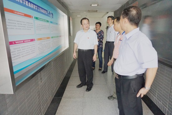 屈哨兵书记在参观学院的宣传栏时,强调学院要重视宣传,要做出特色,要以崭新的面貌迎接审核工作。